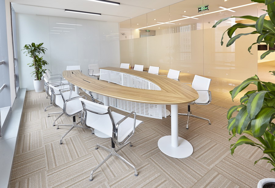 会议区继续沿用清新简约的现代风,主色调与整个办公空间保持一致。无论是小洽谈室,还是大会议室,灵活的斯格系列会议桌都表现出高度的空间适应性。
