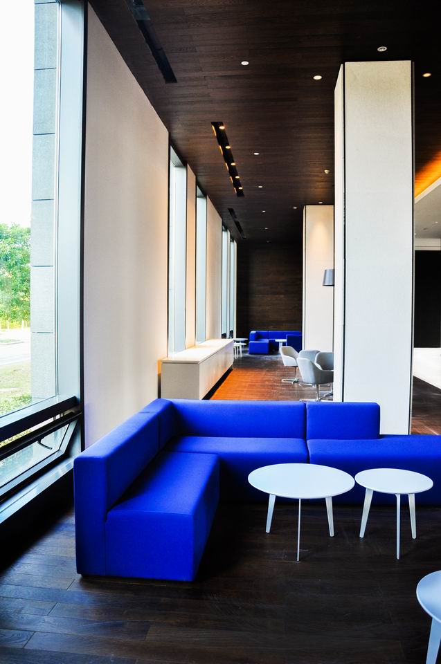 室内别具一格的灯光,与透过玻璃幕墙的自然光,相得益彰,带你体验和谐、优质的光环境。